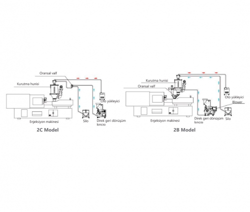 - Standart ekipmanlar malzeme haznesine sahiptir. 22B ile biten modeller, yükleyiciye sahiptir. 32C ile biten modeller, oransal valfe sahiptir.